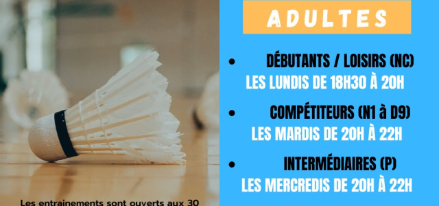 Les inscriptions aux entraînements adultes sont ouvertes ! L'inscription est obligatoire car le nombre de place est limité. Merci de vous inscrire sur HelloAsso